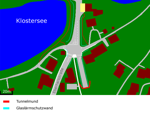 Der Klostersee profitiert bei manchen der vorstellbaren Tunnel-Varianten nicht unmittelbar. Bei diesen Varianten sind umfangreiche Schallschutzmaßnahmen ("Flüsterasphalt" und Lärmschutzwände aus Glas) vorgesehen. Mit diesen Maßnahmen wird der Klostersee mehr beruhigt als bei allen anderen Umfahrungsvarianten, da bei diesen am Klostersee täglich immer noch Tausende Autos (ohne Lärmschutz!) vorbeirollen würden.
