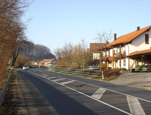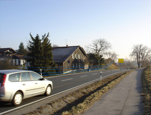 Es ist eine Abflachung der Schwabener Straße bis hinter die Marienkapelle und Asphaltierung mit "Flüsterasphalt" (-7 dB(A)) vorgesehen. Diese beiden Maßnahmen wirken sich schon sehr positiv auf den Faktor Lärm aus (v.a. das entfallende Zurückschalten der Kfz am abgeflachten Berg) und werden noch, wo nötig, mit Schallschutzwänden aus Glas (-10 dB(A)) ergänzt.