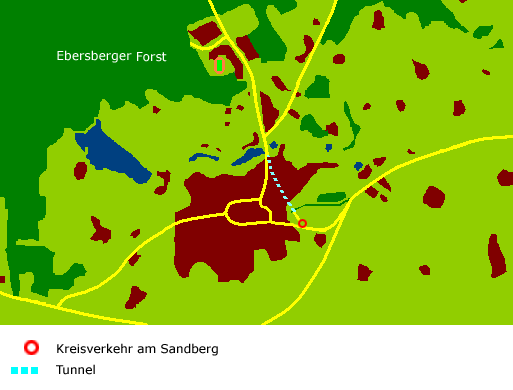 da ab verläuft die Straße weiter in Tunnellage 800 m unter Ebersberg hindurch